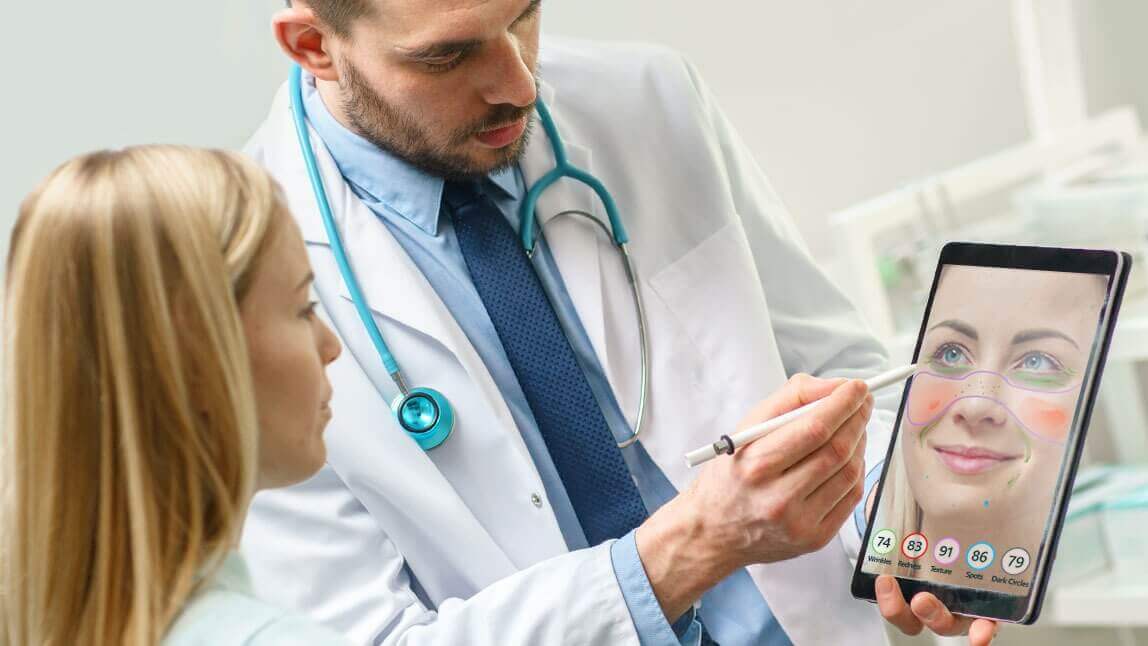 AI 肤质检测:识别油脂、皱纹、毛孔、斑点等8 项维度,生成可视化分析报告。