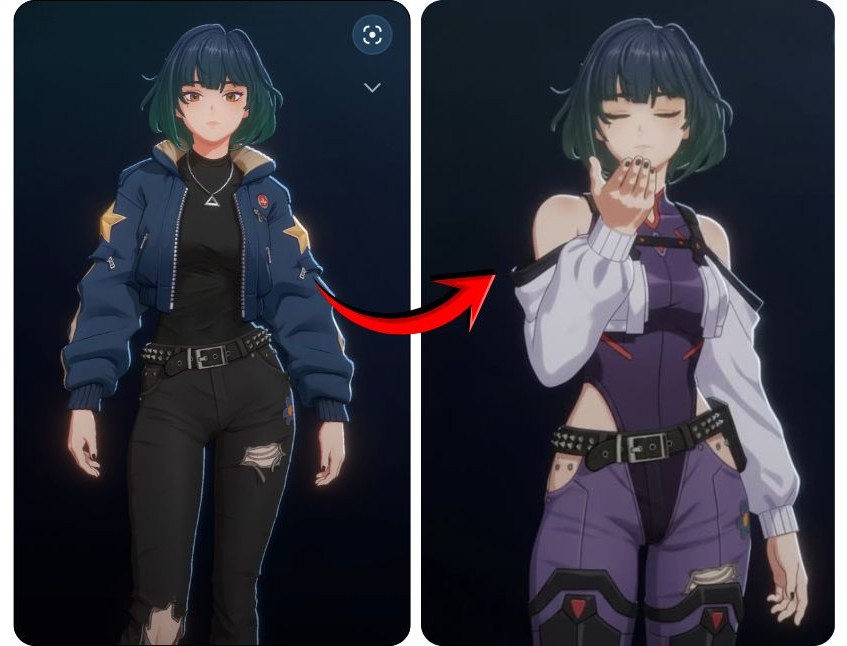 - 外貌:Mika 擁有短款漸層藍綠色髮色、穿著皮革機車夾克、黑色破洞牛仔褲與極具態度的街頭風造型。(貌似電馭叛客Lucy風格)