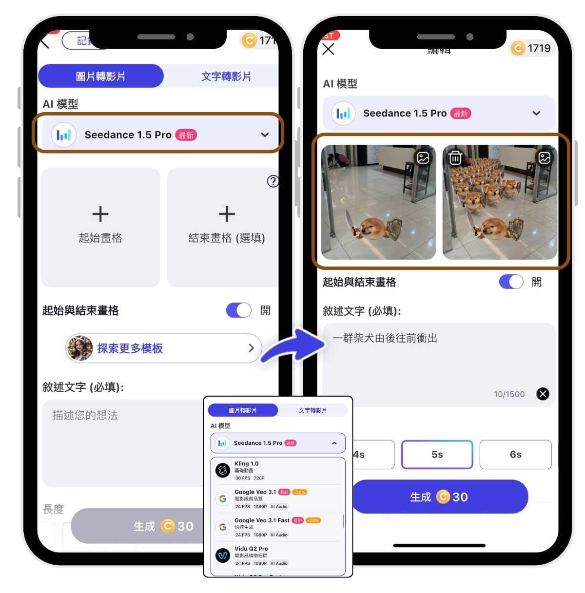 ▲ 圖片轉影片部分 AI 模型提供 固定起始 & 結束畫面,可依照需求自行開關