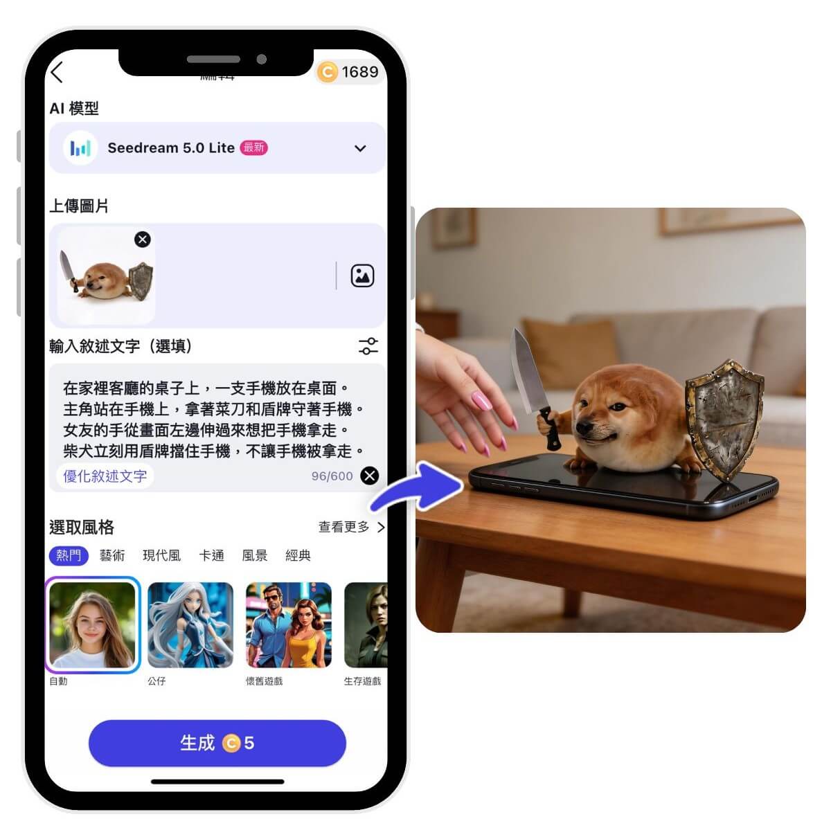 製作我的刀盾梗圖 - 玩美 AI 繪圖