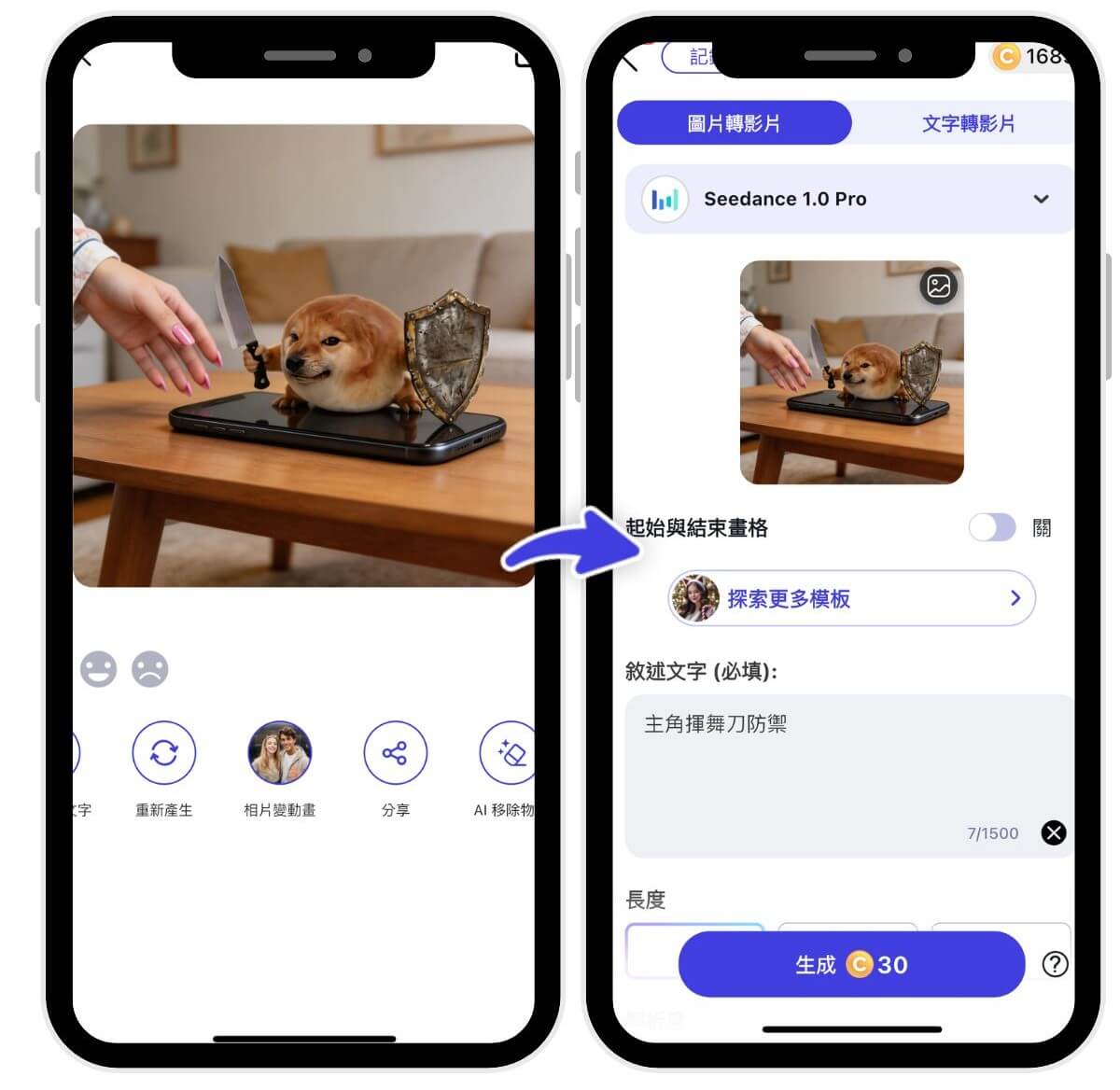 現在透過 AI 繪圖與 AI 影片生成工具,即使沒有剪輯經驗,也能輕鬆製作自己的「我的刀盾」迷因特效。