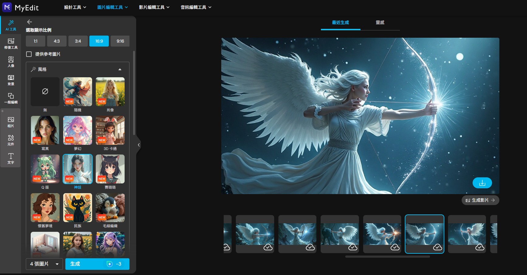 MyEdit 是一款功能齊全的中文 AI 繪圖網站,AI 生圖作品細緻細膩,在介面和流程上也十分簡單易懂。內建近 40 種藝術風格可一鍵套用,也能上傳臉部、姿勢、構圖或風格的參考圖片,對於想找 Midjourney 免費替代方案的繪圖新手或專業人士來說很值得一試。