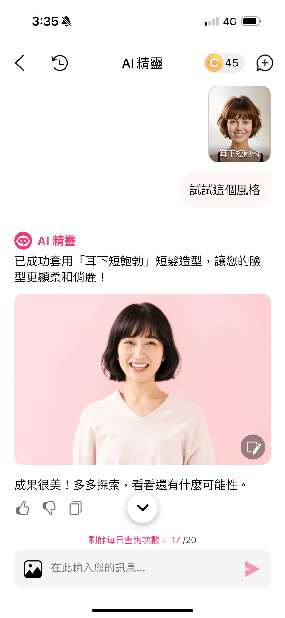 除此之外,玩美彩妝最新推出的 AI 精靈🧚,是一款專為不想花時間研究髮型、妝容的媽媽們設計的貼心小幫手。你只要上傳一張照片,AI 精靈就會自動看出你的 臉型、膚質與適合的髮型,並提出最自然、最顯年輕的造型建議。