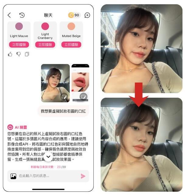 | 能不能預覽「她用起來的效果」? | ✔️ 可以直接虛擬試妝 / 試髮 / 試穿,確認適不適合她 | ❌ 只能給出建議,看不到實際效果 |