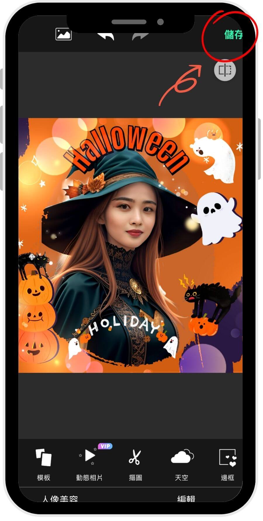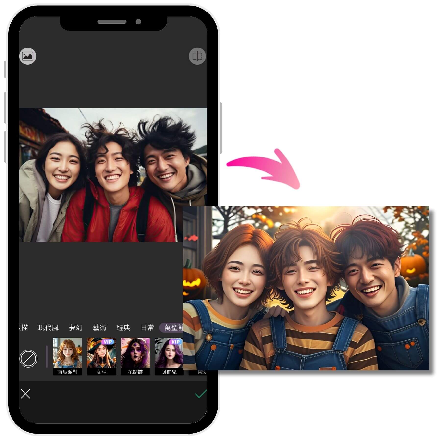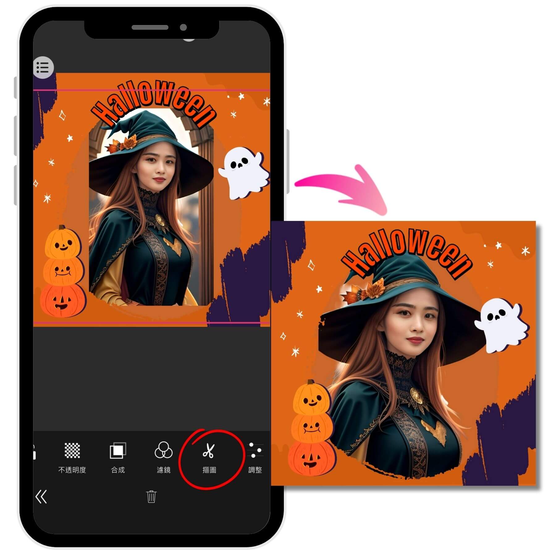 ▲ 套用模板後,點選似顏繪照片還可摳圖將背景去掉,讓圖片更融入萬聖節模板