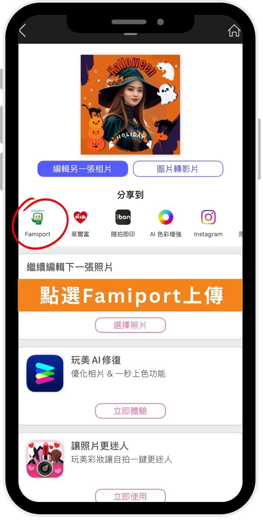 完成好你的萬聖節似顏繪小卡之後,就可以準備上傳到全家的雲端,直接到 Famiport 列印就可以啦!以下為你說明上傳列印的步驟: