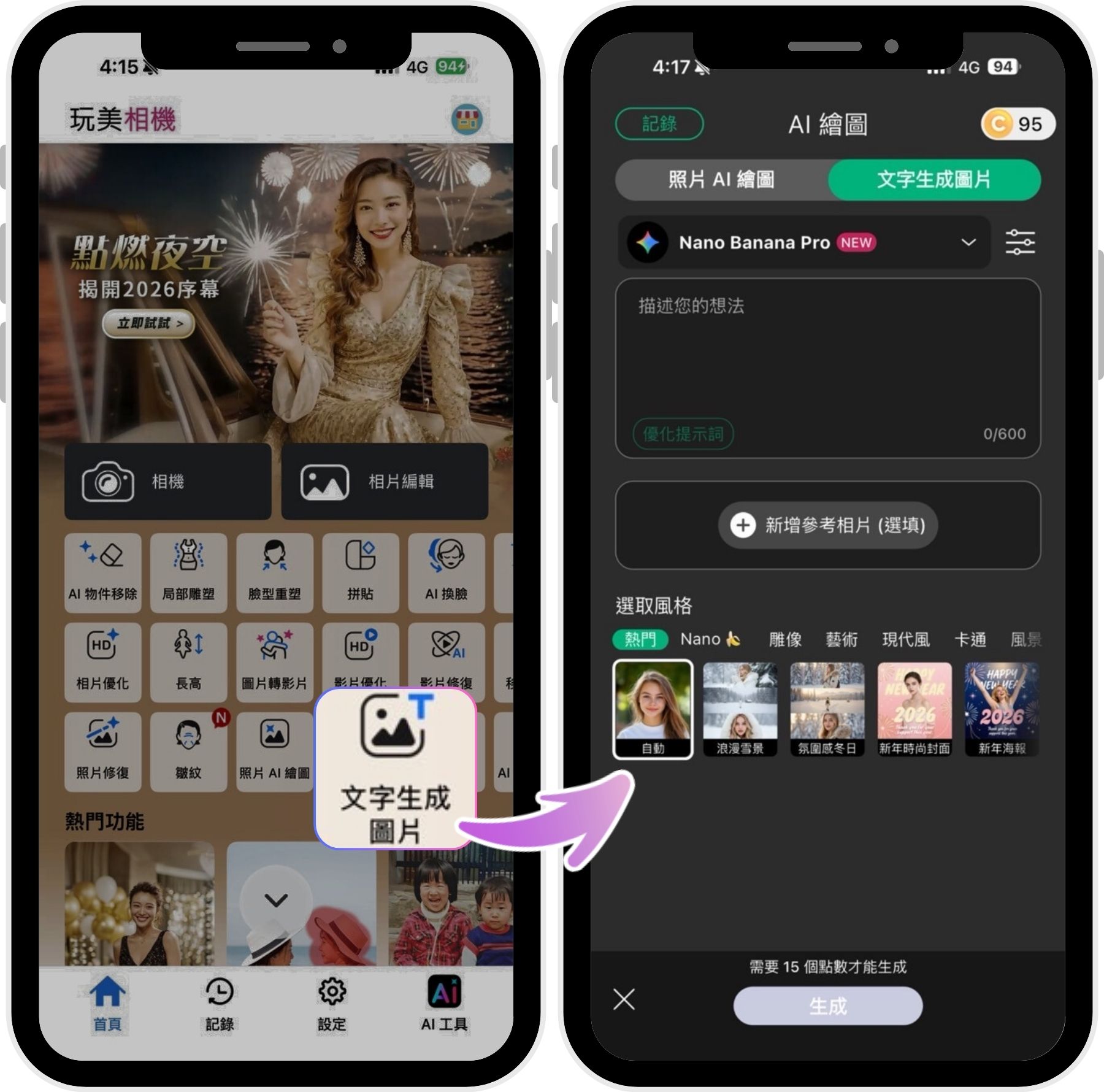 選擇「AI 繪圖」功能來生成你的新年照片。