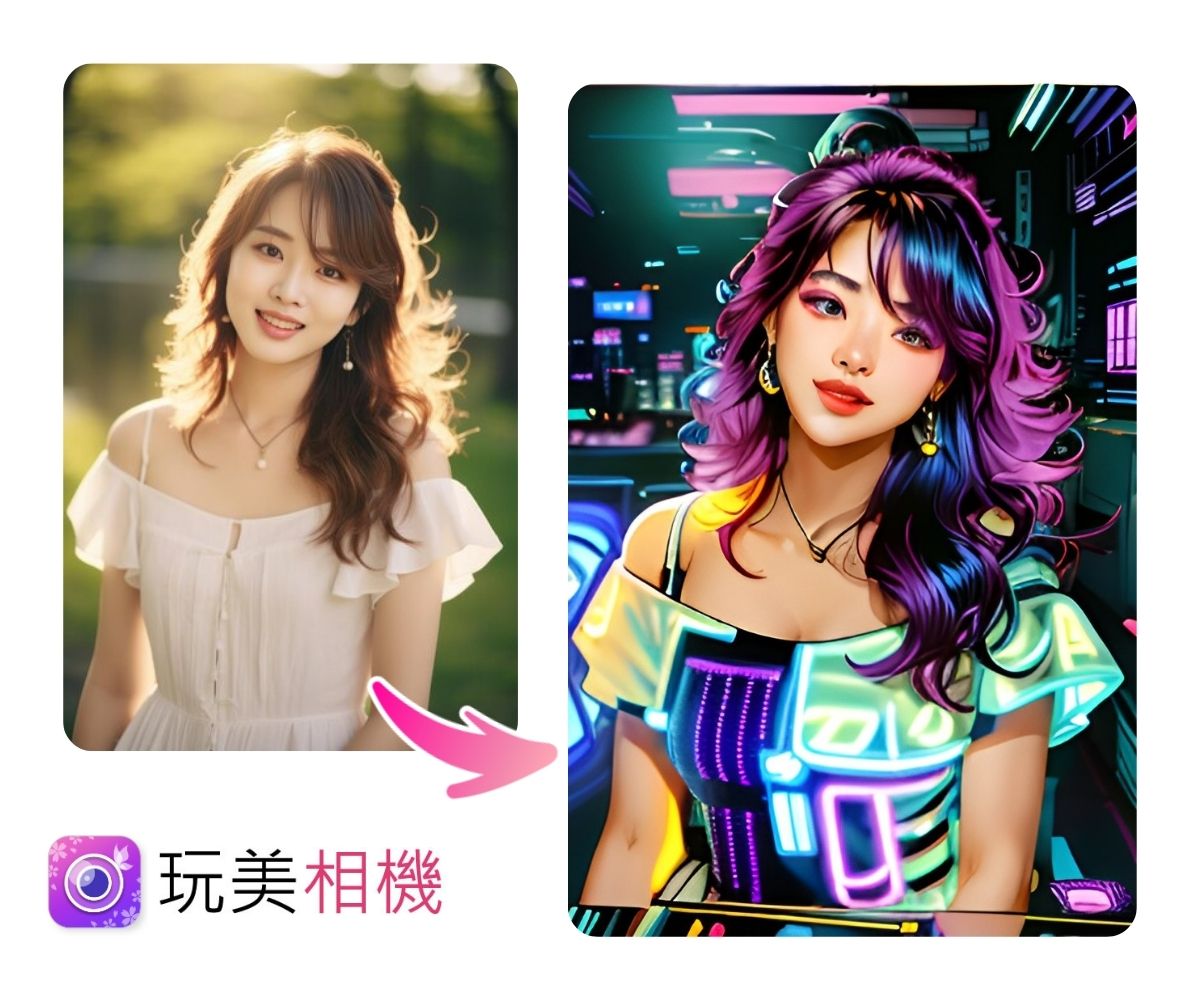 選擇霓虹賽博龐克風格,一鍵生成出充滿未來感的迷幻風格,讓你從原圖的小清新風直接變成充滿個性、獨一無二的霓虹酷炫風!
