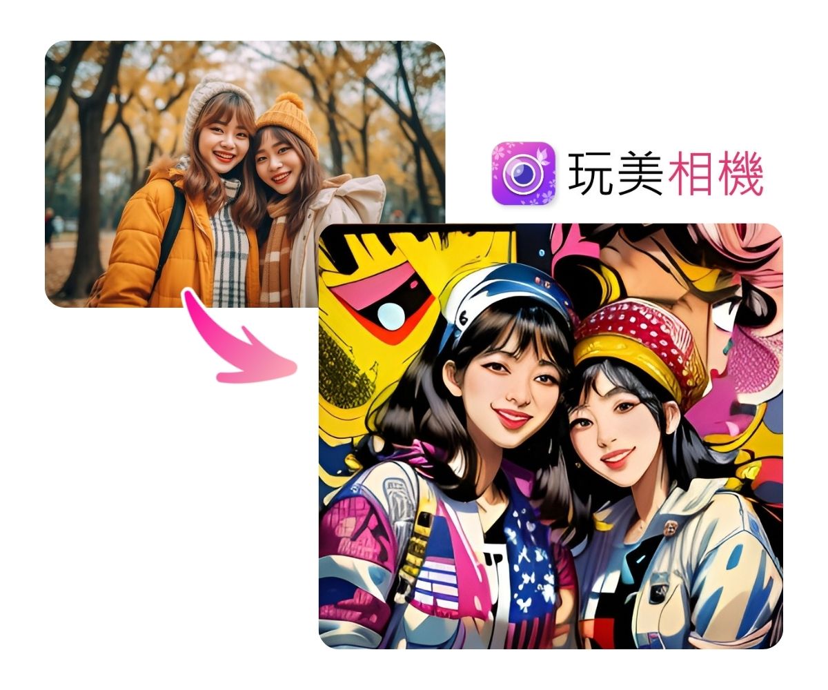 而除了霓虹賽博龐克風格、塗鴉藝術風格,這款流行藝術風格更散發出了強烈的撞色感,普普風的色塊除了很適合生成個人照,也很推薦生成你與好友的閨蜜合照喔!