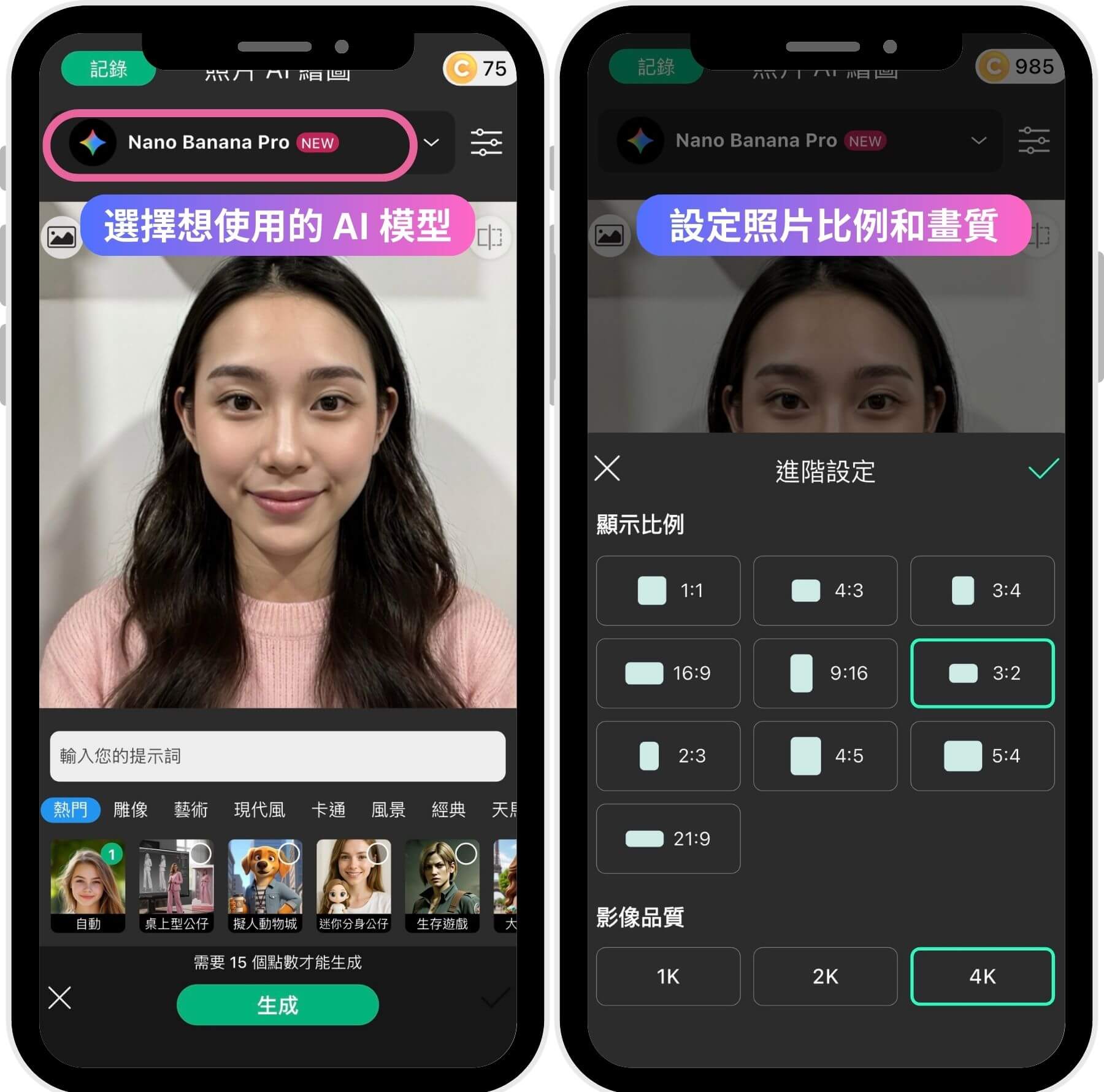 💡 小撇步:製作時建議保留照片原始細節,避免使用過強的濾鏡,以符合對於「真實人像」的要求。