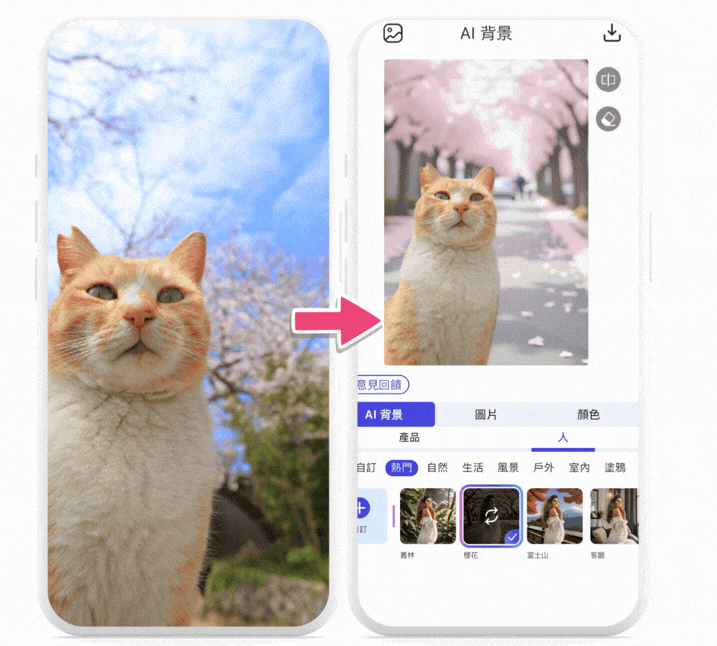 ▲ 利用玩美 AI 繪圖一鍵替換背景