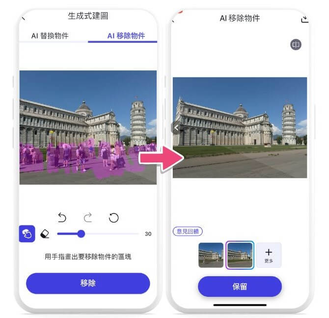 無論是去除雜物、替換背景,還是進行精緻修圖,都能快速完成,讓你一鍵擁有最自然、完美的照片。