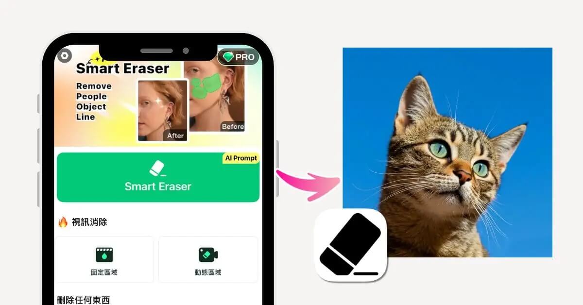 搭載強大 AI 消除與生成功能,支援塗抹去除馬賽克並自動填補背景,或使用 AI 替換功能還原細節。