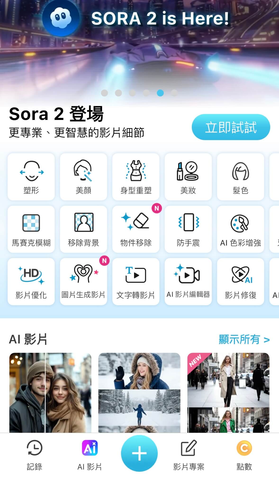 ✔ 玩美 Video 目前整合 Sora 2、Sora 2 Pro、Kling AI、Google Veo 3.1、PixVerse 5、Vidu、Seedance 等多款頂尖 AI 影片模型。