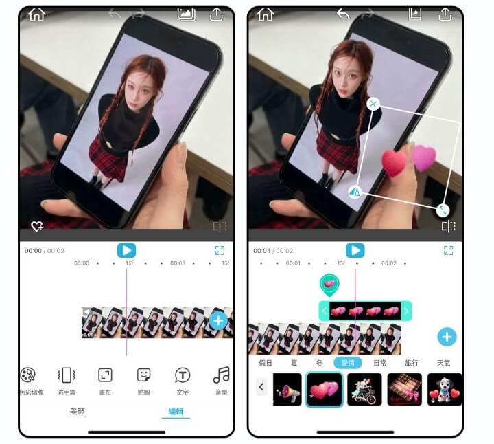 步驟四:用玩美 Video 內建動態貼紙裝飾