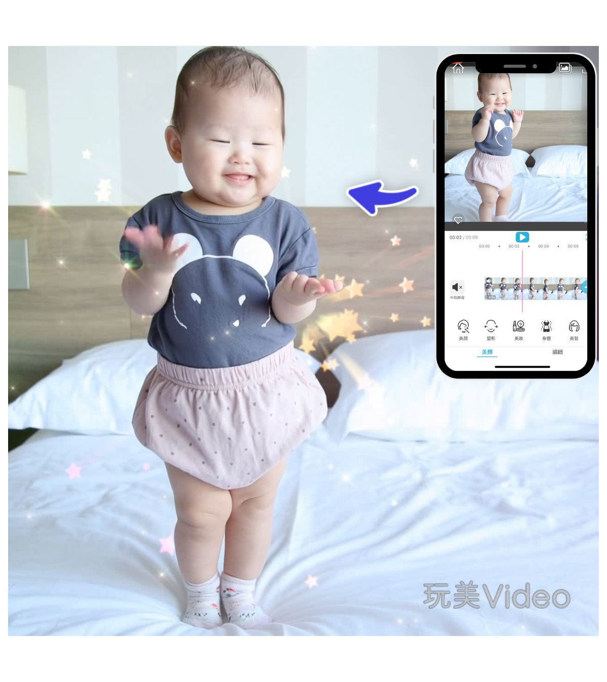 ▲ 使用玩美 Video 製作 AI 嬰兒跳舞影片🔗影片參考